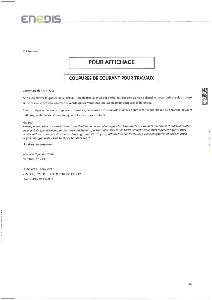 COUPURE DE COURANT DU 2 JANVIER 2026